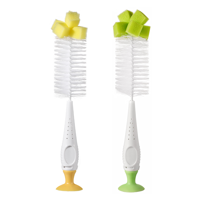 L' ensemble de brosses à biberon 2 en 1 est conçu pour répondre aux besoins des bouteilles de bébé et des sucettes . L'ensemble comprend une brosse à poils en nylon pour nettoyer les bouteilles soigneusement et une brosse à éponge douce pour nettoyer en toute sécurité les sucettes, offrant une solution complète pour les soins de l'équipement d'alimentation pour bébé.